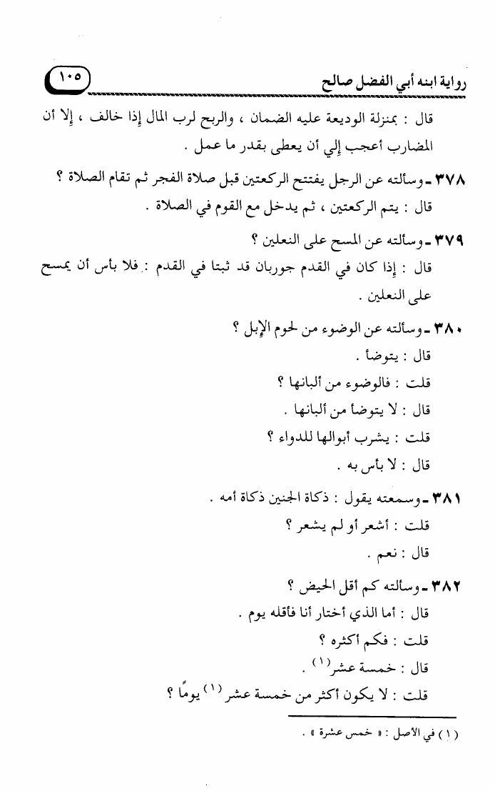 مسائل الإمام أحمد بن حنبل رواية ابنه أبي الفضل صالح (ت. عوض الله)