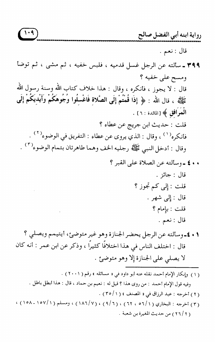 مسائل الإمام أحمد بن حنبل رواية ابنه أبي الفضل صالح (ت. عوض الله)