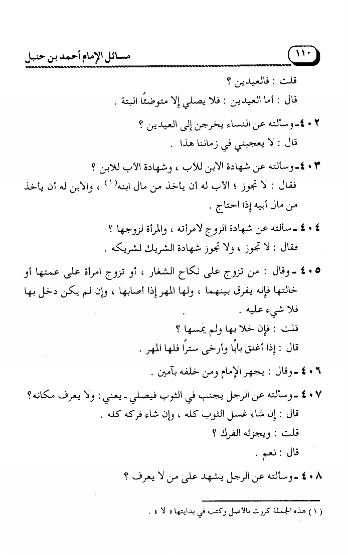 مسائل الإمام أحمد بن حنبل رواية ابنه أبي الفضل صالح (ت. عوض الله)