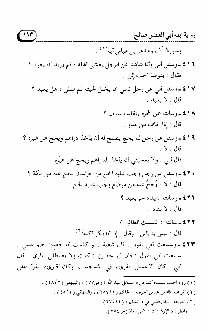 مسائل الإمام أحمد بن حنبل رواية ابنه أبي الفضل صالح (ت. عوض الله)