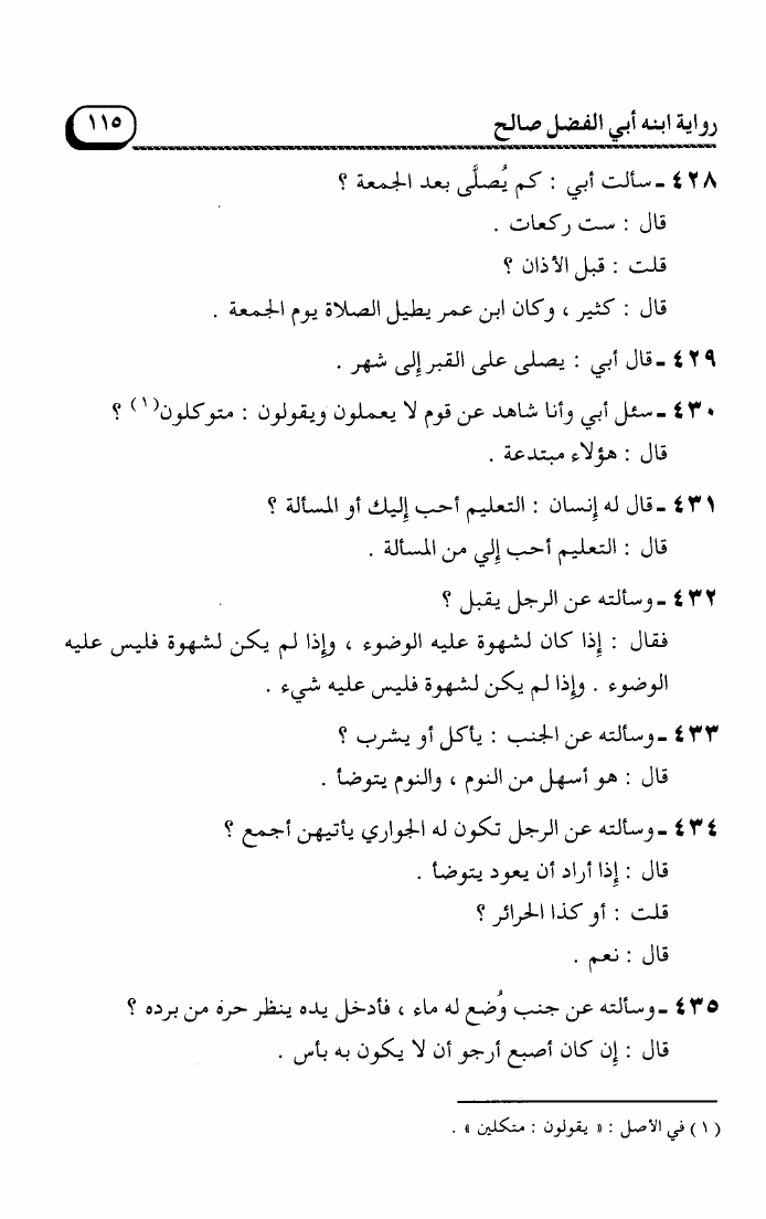 مسائل الإمام أحمد بن حنبل رواية ابنه أبي الفضل صالح (ت. عوض الله)