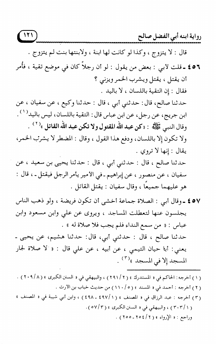 مسائل الإمام أحمد بن حنبل رواية ابنه أبي الفضل صالح (ت. عوض الله)