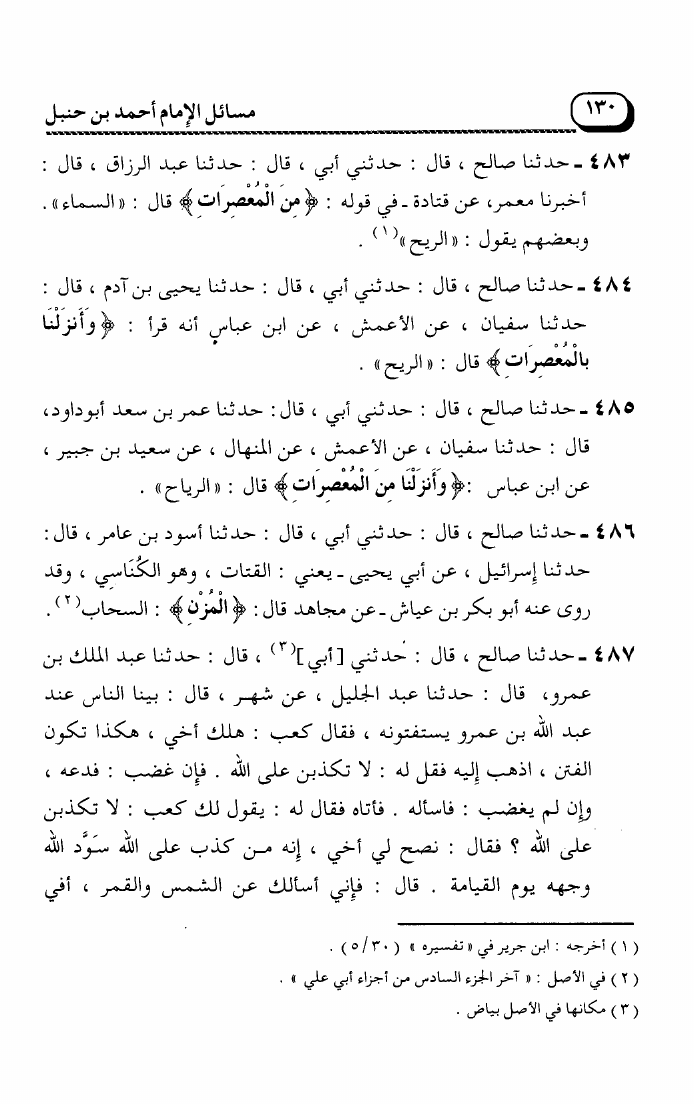 مسائل الإمام أحمد بن حنبل رواية ابنه أبي الفضل صالح (ت. عوض الله)