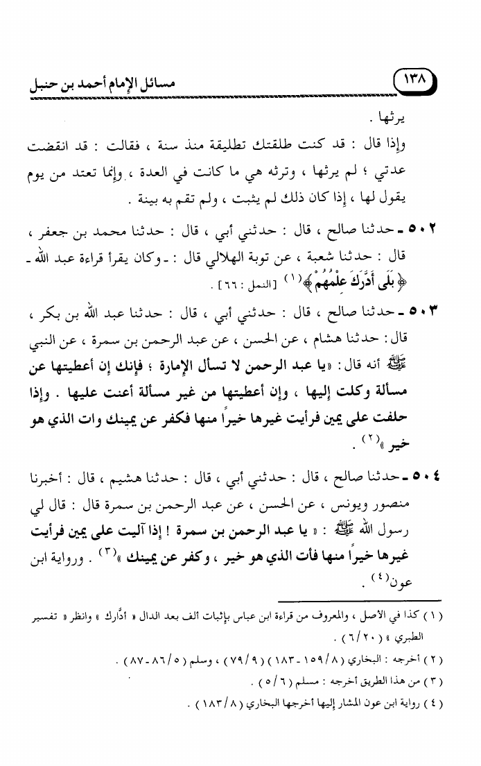 مسائل الإمام أحمد بن حنبل رواية ابنه أبي الفضل صالح (ت. عوض الله)