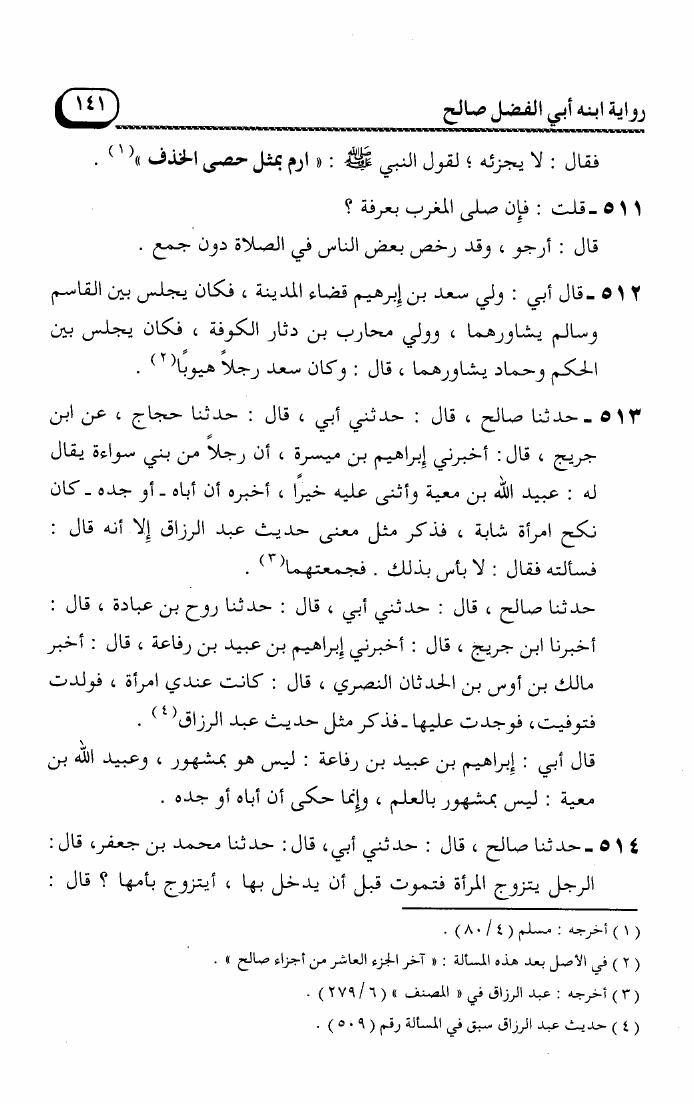 مسائل الإمام أحمد بن حنبل رواية ابنه أبي الفضل صالح (ت. عوض الله)