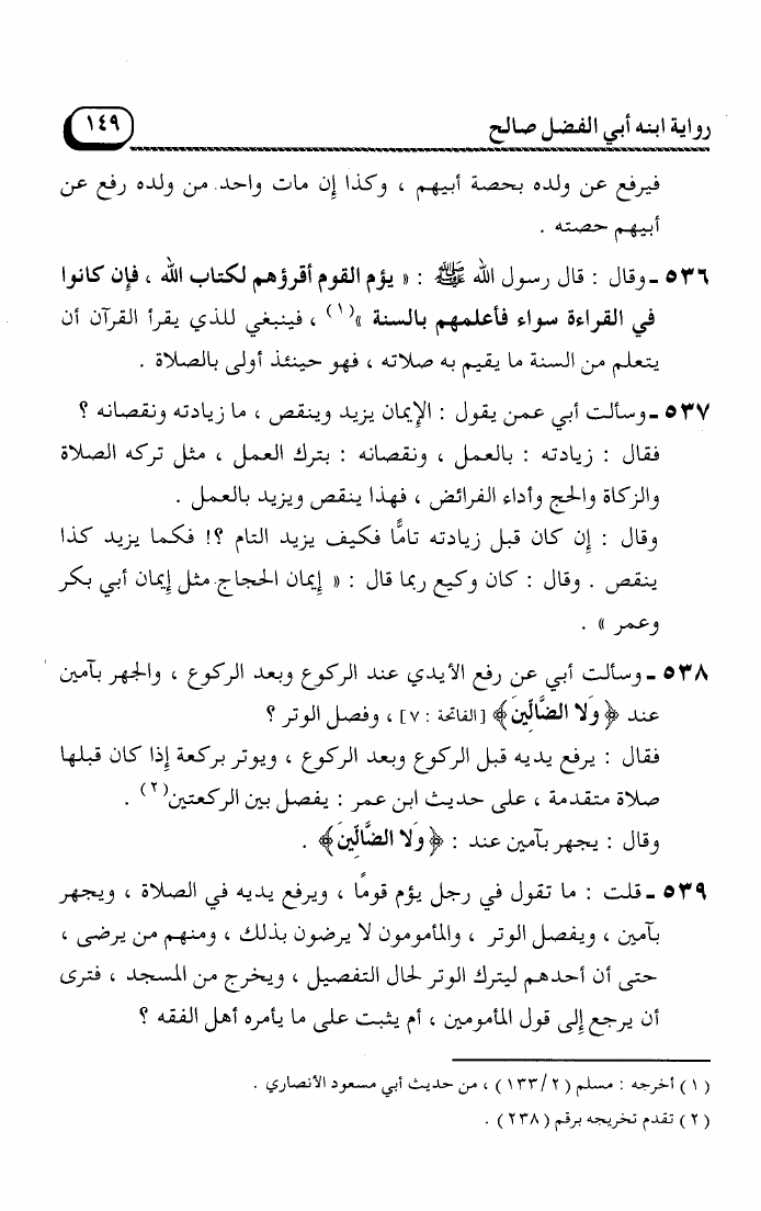 مسائل الإمام أحمد بن حنبل رواية ابنه أبي الفضل صالح (ت. عوض الله)