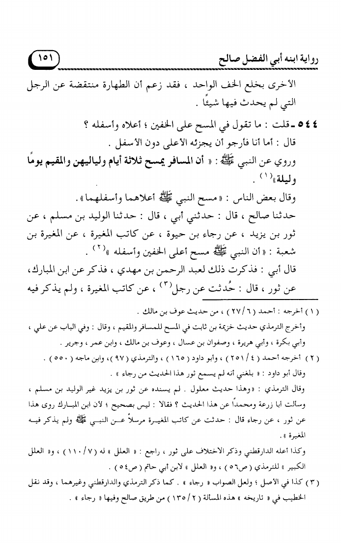 مسائل الإمام أحمد بن حنبل رواية ابنه أبي الفضل صالح (ت. عوض الله)