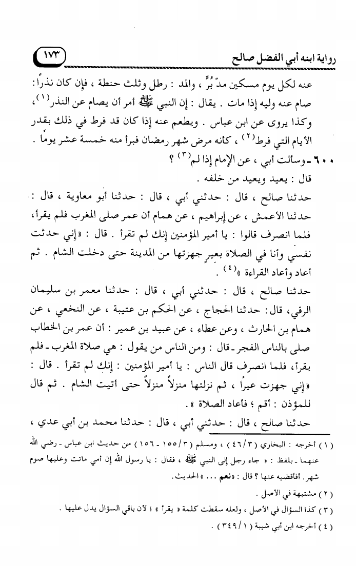 مسائل الإمام أحمد بن حنبل رواية ابنه أبي الفضل صالح (ت. عوض الله)