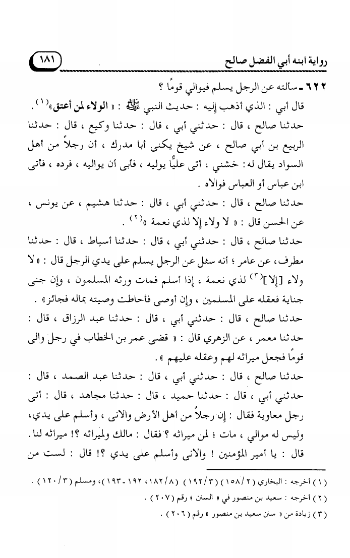 مسائل الإمام أحمد بن حنبل رواية ابنه أبي الفضل صالح (ت. عوض الله)