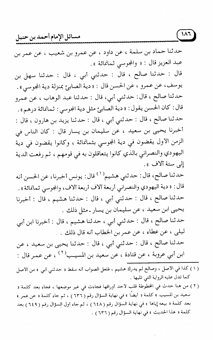 مسائل الإمام أحمد بن حنبل رواية ابنه أبي الفضل صالح (ت. عوض الله)