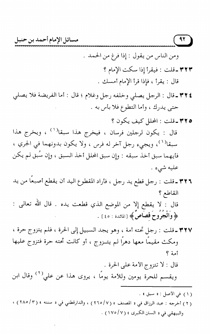 مسائل الإمام أحمد بن حنبل رواية ابنه أبي الفضل صالح (ت. عوض الله)