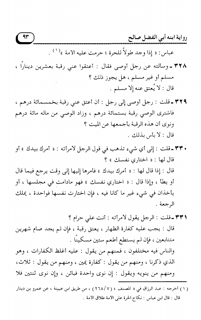 مسائل الإمام أحمد بن حنبل رواية ابنه أبي الفضل صالح (ت. عوض الله)