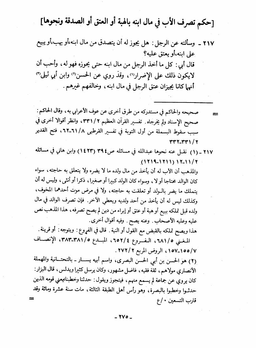 مسائل الإمام أحمد بن حنبل رواية ابنه أبي الفضل صالح (ط. الهند)