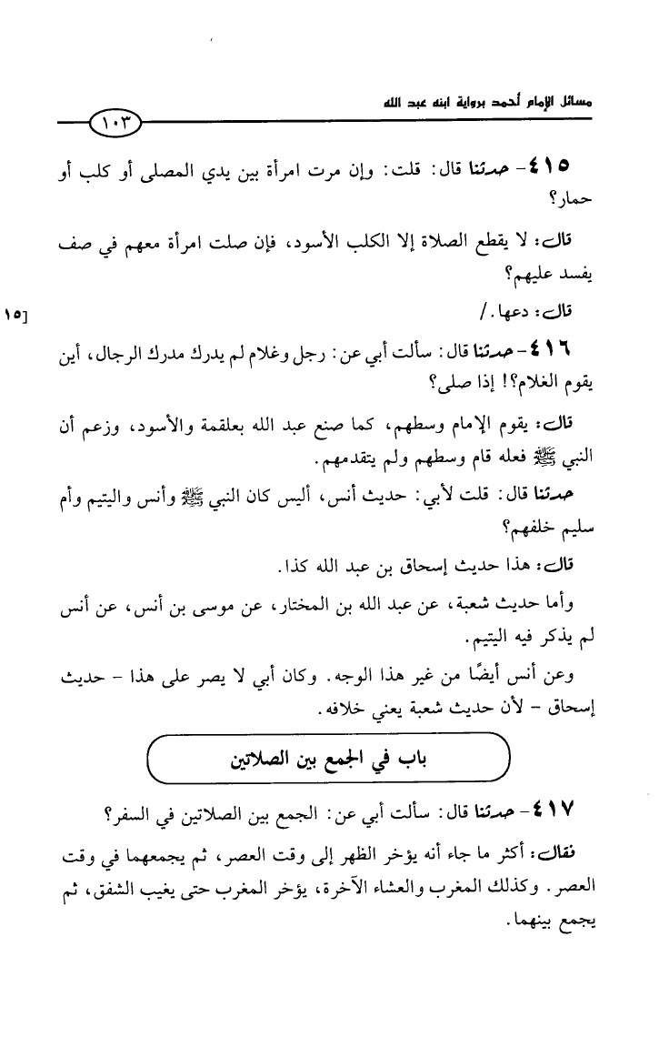 مسائل الإمام أحمد بن حنبل رواية ابنه عبد الله بن أحمد (ت: سالم)