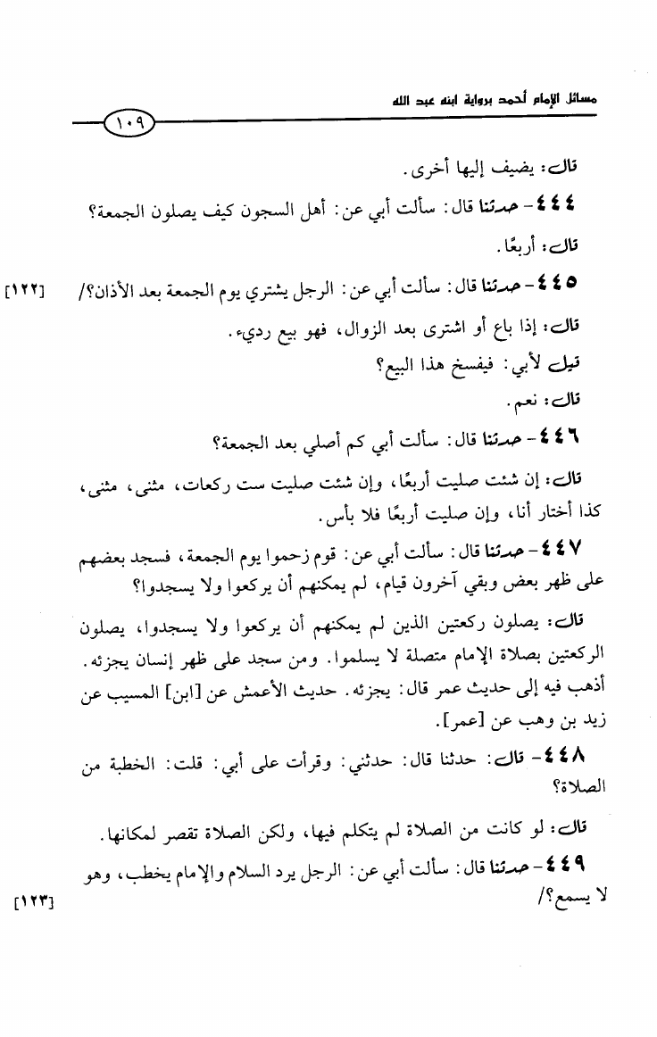 مسائل الإمام أحمد بن حنبل رواية ابنه عبد الله بن أحمد (ت: سالم)