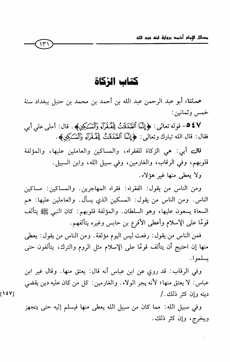 مسائل الإمام أحمد بن حنبل رواية ابنه عبد الله بن أحمد (ت: سالم)