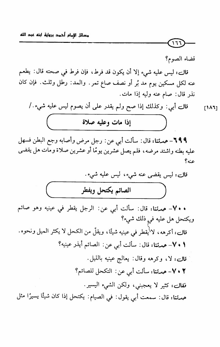 مسائل الإمام أحمد بن حنبل رواية ابنه عبد الله بن أحمد (ت: سالم)