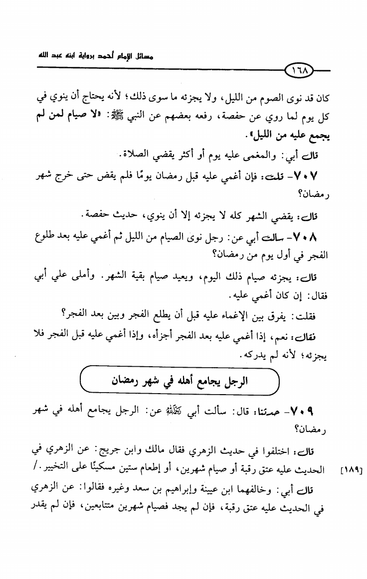 مسائل الإمام أحمد بن حنبل رواية ابنه عبد الله بن أحمد (ت: سالم)