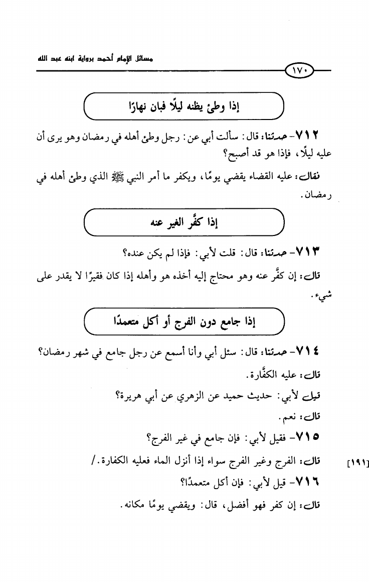 مسائل الإمام أحمد بن حنبل رواية ابنه عبد الله بن أحمد (ت: سالم)