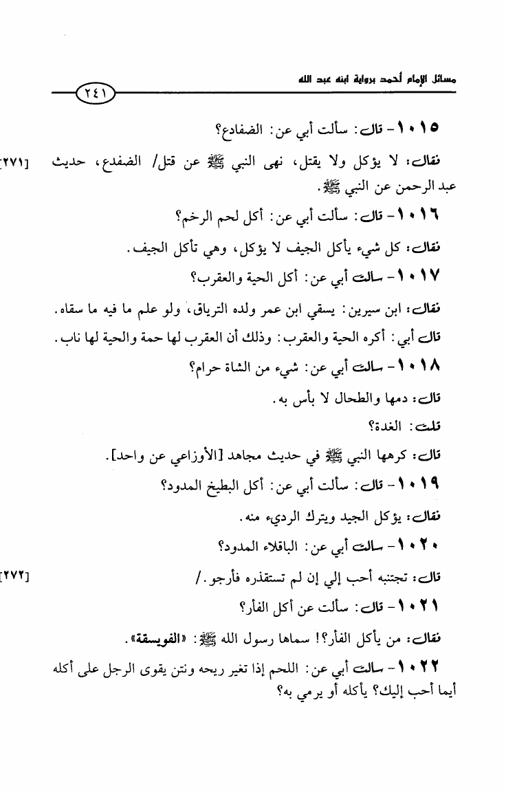 مسائل الإمام أحمد بن حنبل رواية ابنه عبد الله بن أحمد (ت: سالم)