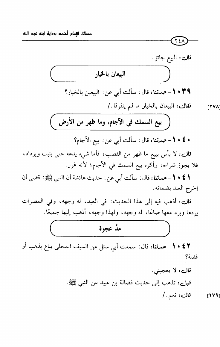 مسائل الإمام أحمد بن حنبل رواية ابنه عبد الله بن أحمد (ت: سالم)