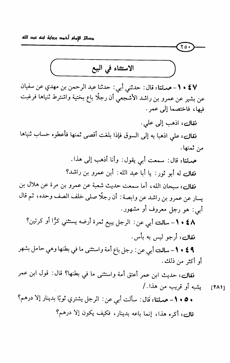 مسائل الإمام أحمد بن حنبل رواية ابنه عبد الله بن أحمد (ت: سالم)