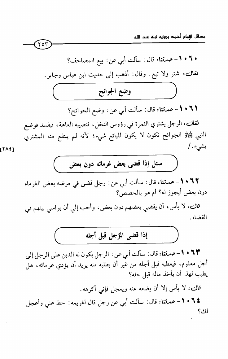 مسائل الإمام أحمد بن حنبل رواية ابنه عبد الله بن أحمد (ت: سالم)