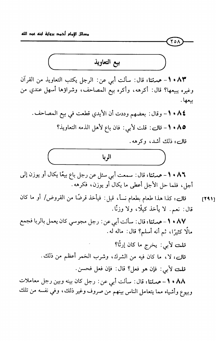 مسائل الإمام أحمد بن حنبل رواية ابنه عبد الله بن أحمد (ت: سالم)