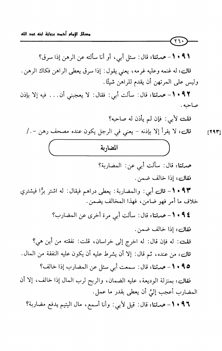 مسائل الإمام أحمد بن حنبل رواية ابنه عبد الله بن أحمد (ت: سالم)
