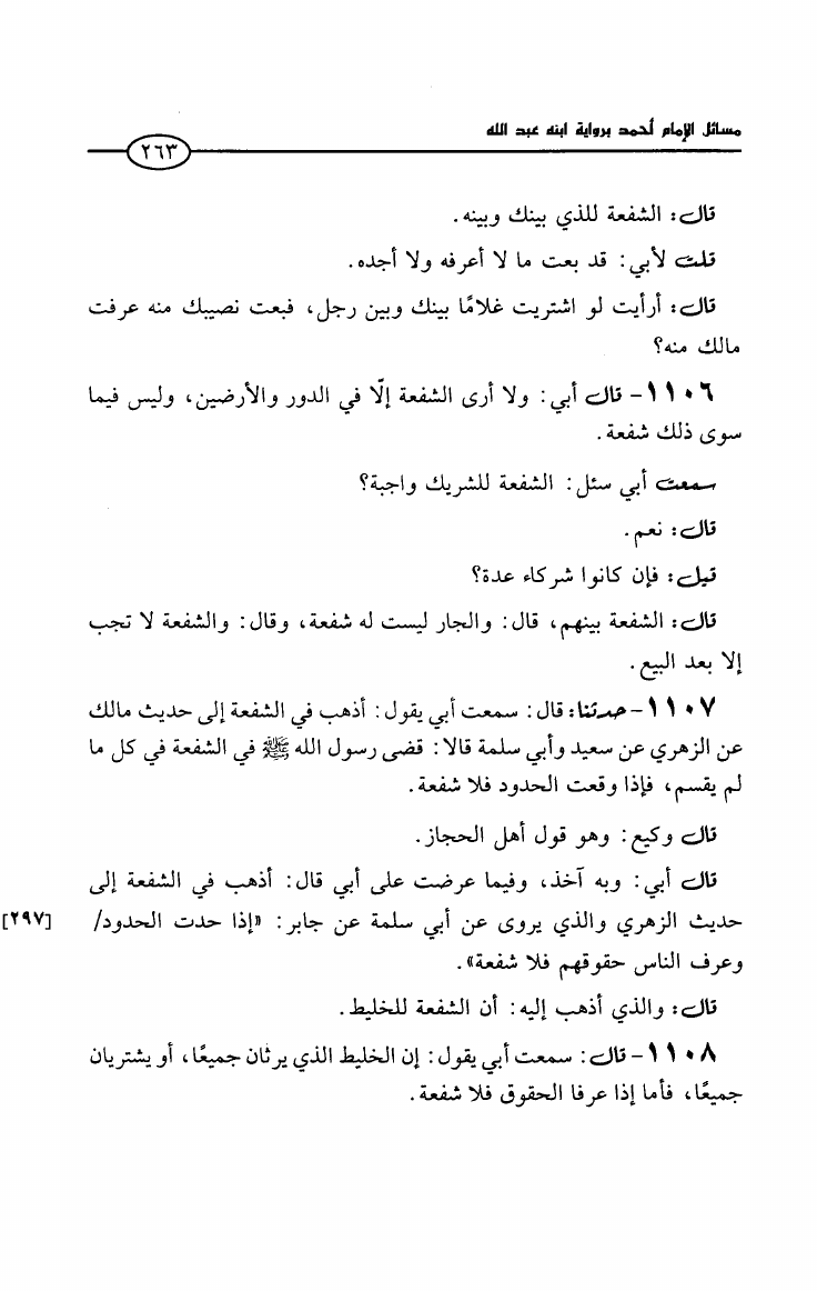 مسائل الإمام أحمد بن حنبل رواية ابنه عبد الله بن أحمد (ت: سالم)