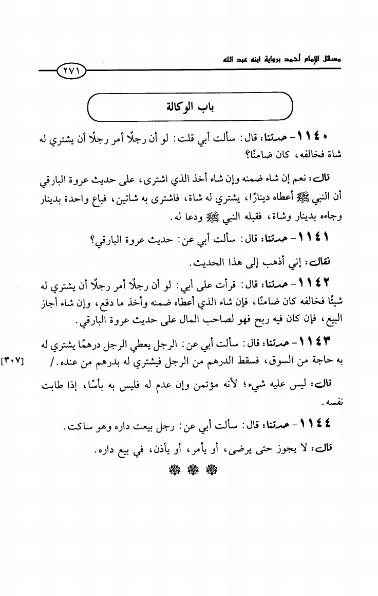 مسائل الإمام أحمد بن حنبل رواية ابنه عبد الله بن أحمد (ت: سالم)