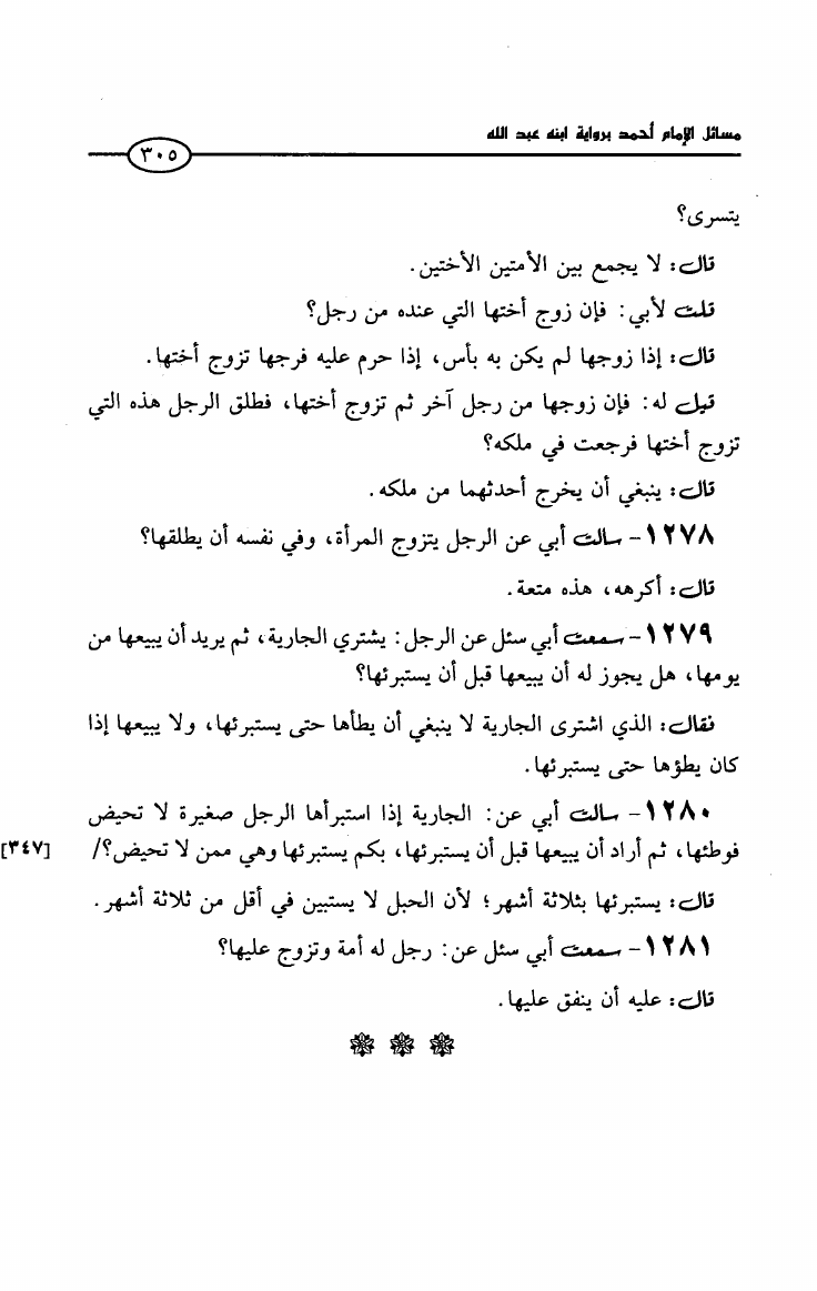 مسائل الإمام أحمد بن حنبل رواية ابنه عبد الله بن أحمد (ت: سالم)