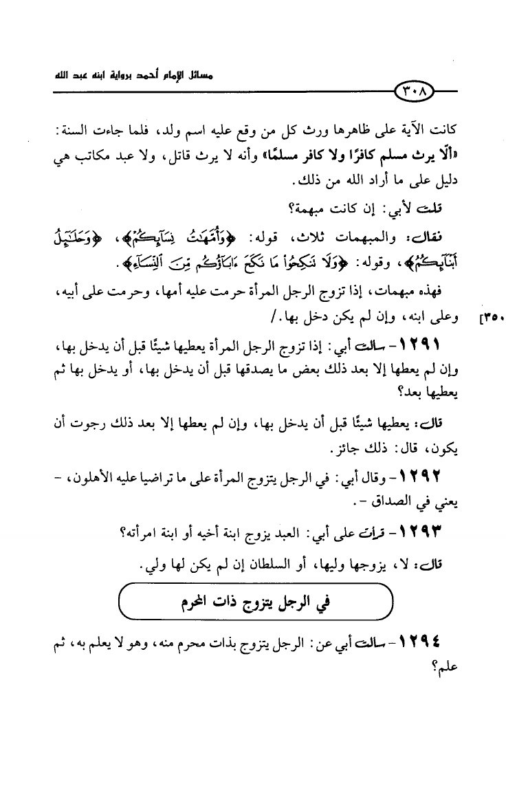 مسائل الإمام أحمد بن حنبل رواية ابنه عبد الله بن أحمد (ت: سالم)