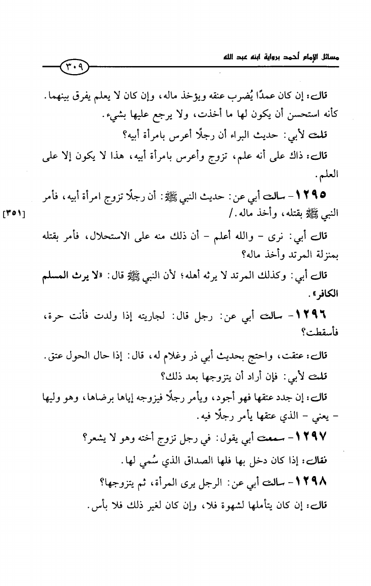 مسائل الإمام أحمد بن حنبل رواية ابنه عبد الله بن أحمد (ت: سالم)