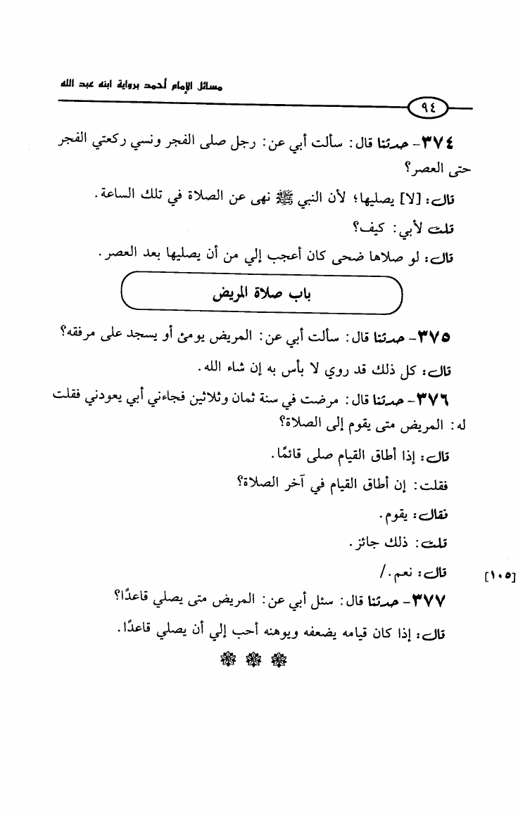 مسائل الإمام أحمد بن حنبل رواية ابنه عبد الله بن أحمد (ت: سالم)
