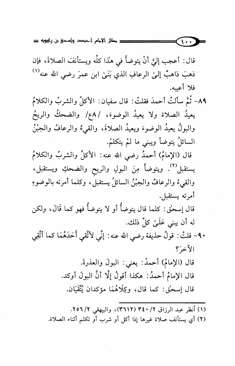 نام کتاب : مسائل الإمام أحمد بن حنبل وإسحاق ابن راهويه رواية إسحاق بن منصور الكوسج المروزي (ط. دار الهجرة) نویسنده : سحاق بن منصور الكوسج المروزي جلد : 1 صفحه : 100