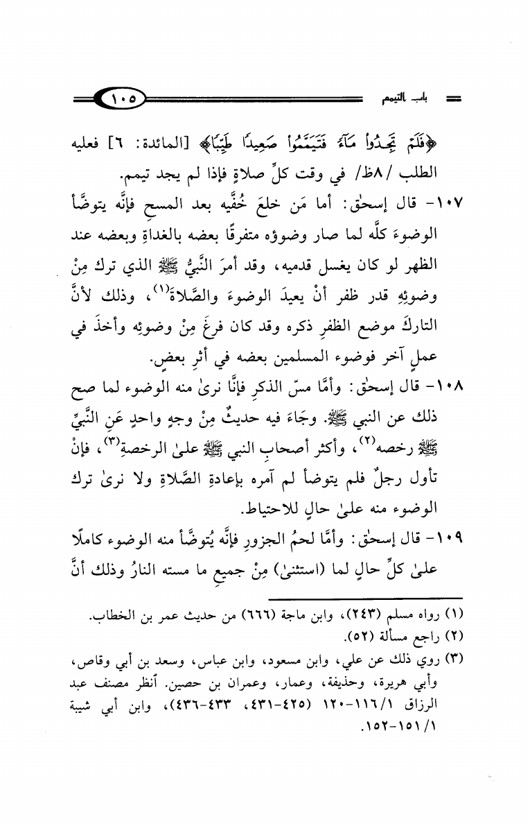 نام کتاب : مسائل الإمام أحمد بن حنبل وإسحاق ابن راهويه رواية إسحاق بن منصور الكوسج المروزي (ط. دار الهجرة) نویسنده : سحاق بن منصور الكوسج المروزي جلد : 1 صفحه : 105