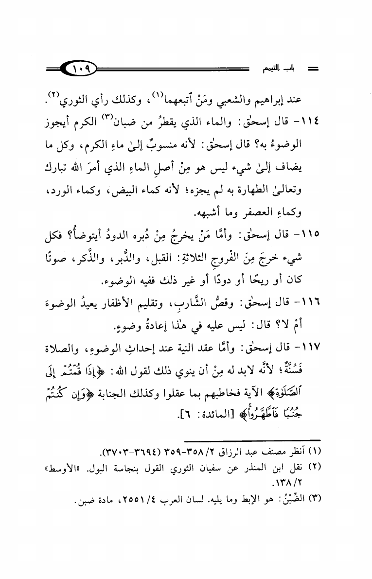 نام کتاب : مسائل الإمام أحمد بن حنبل وإسحاق ابن راهويه رواية إسحاق بن منصور الكوسج المروزي (ط. دار الهجرة) نویسنده : سحاق بن منصور الكوسج المروزي جلد : 1 صفحه : 109