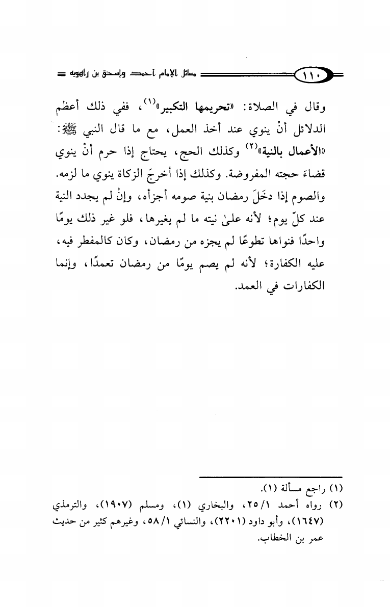 نام کتاب : مسائل الإمام أحمد بن حنبل وإسحاق ابن راهويه رواية إسحاق بن منصور الكوسج المروزي (ط. دار الهجرة) نویسنده : سحاق بن منصور الكوسج المروزي جلد : 1 صفحه : 110