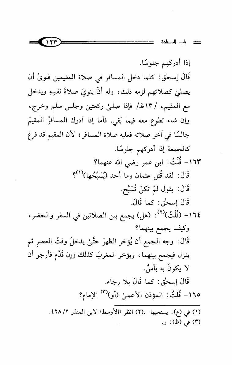 نام کتاب : مسائل الإمام أحمد بن حنبل وإسحاق ابن راهويه رواية إسحاق بن منصور الكوسج المروزي (ط. دار الهجرة) نویسنده : سحاق بن منصور الكوسج المروزي جلد : 1 صفحه : 123