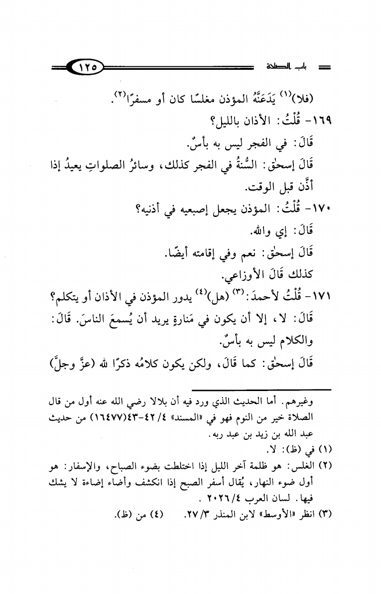 نام کتاب : مسائل الإمام أحمد بن حنبل وإسحاق ابن راهويه رواية إسحاق بن منصور الكوسج المروزي (ط. دار الهجرة) نویسنده : سحاق بن منصور الكوسج المروزي جلد : 1 صفحه : 125