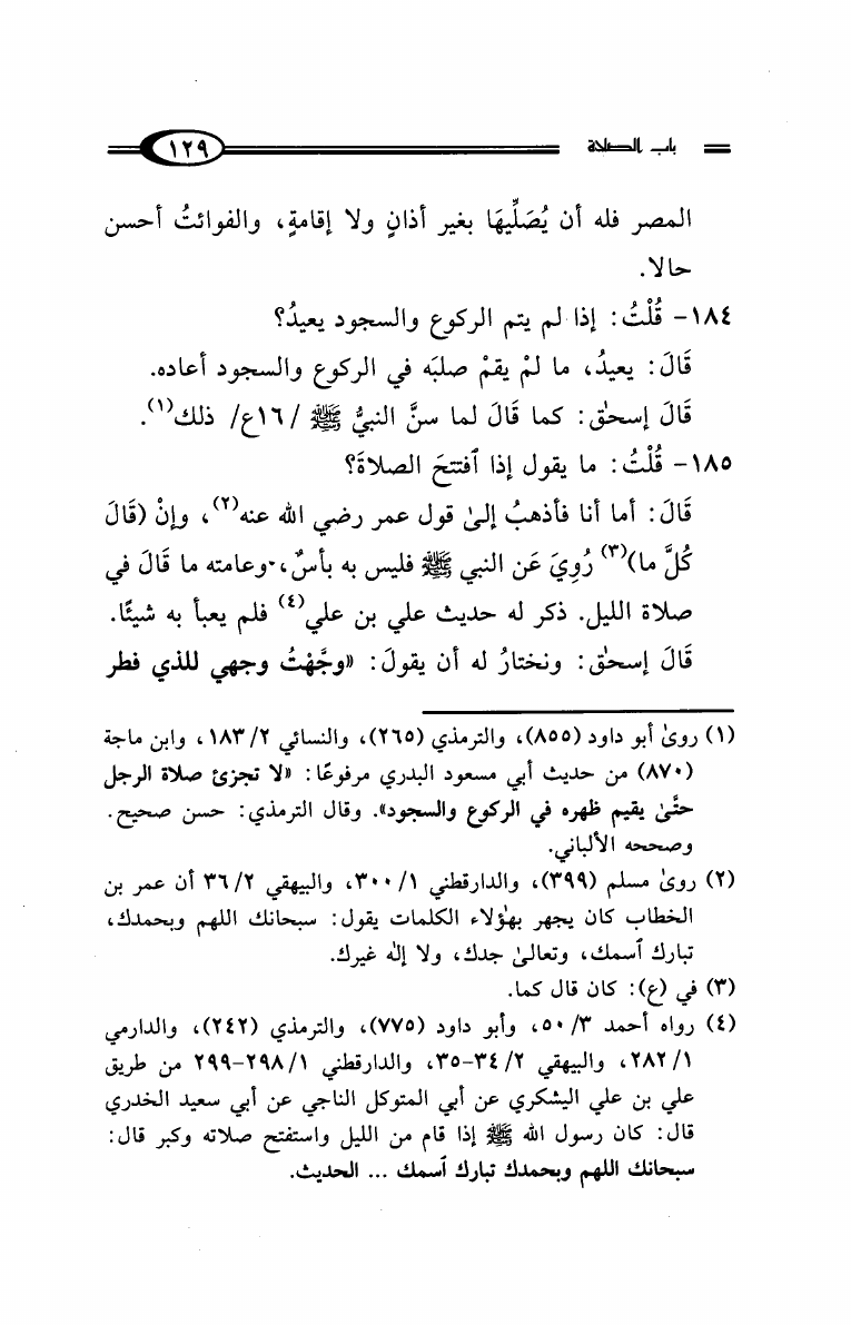نام کتاب : مسائل الإمام أحمد بن حنبل وإسحاق ابن راهويه رواية إسحاق بن منصور الكوسج المروزي (ط. دار الهجرة) نویسنده : سحاق بن منصور الكوسج المروزي جلد : 1 صفحه : 129
