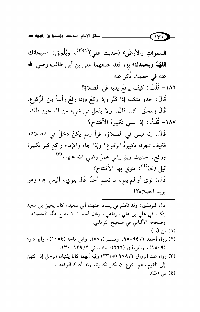 نام کتاب : مسائل الإمام أحمد بن حنبل وإسحاق ابن راهويه رواية إسحاق بن منصور الكوسج المروزي (ط. دار الهجرة) نویسنده : سحاق بن منصور الكوسج المروزي جلد : 1 صفحه : 130