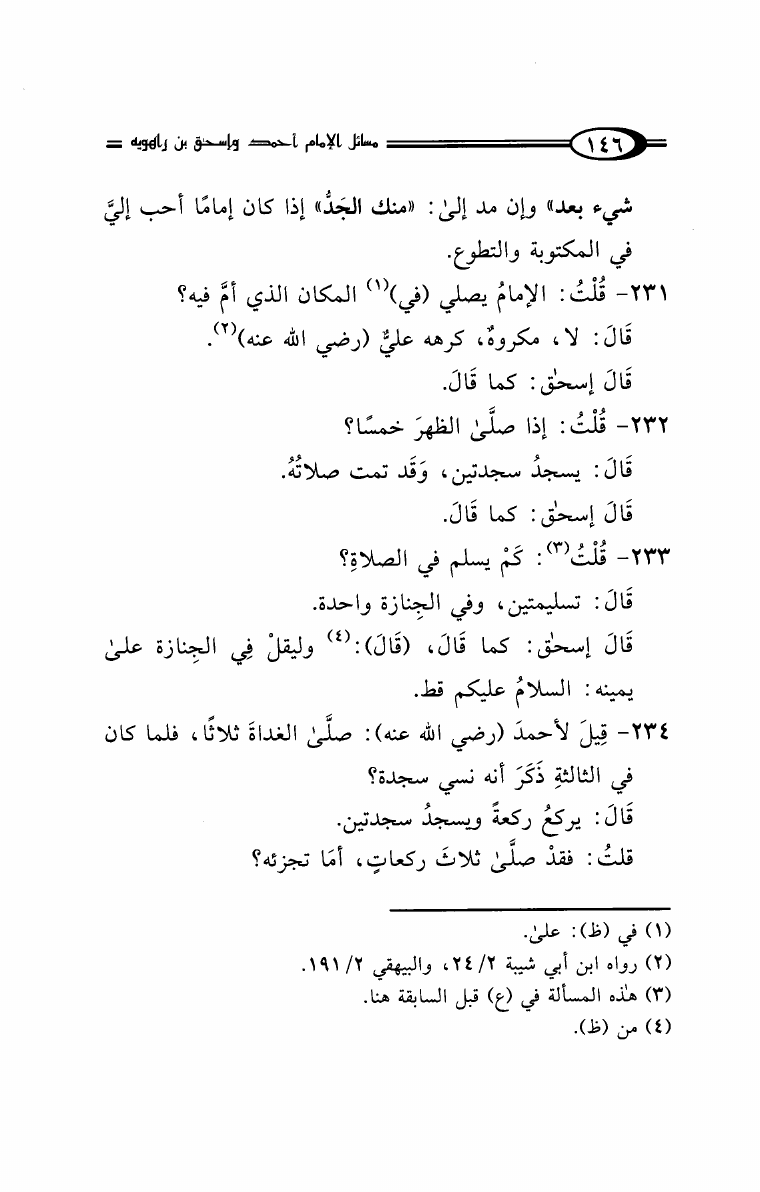 نام کتاب : مسائل الإمام أحمد بن حنبل وإسحاق ابن راهويه رواية إسحاق بن منصور الكوسج المروزي (ط. دار الهجرة) نویسنده : سحاق بن منصور الكوسج المروزي جلد : 1 صفحه : 146