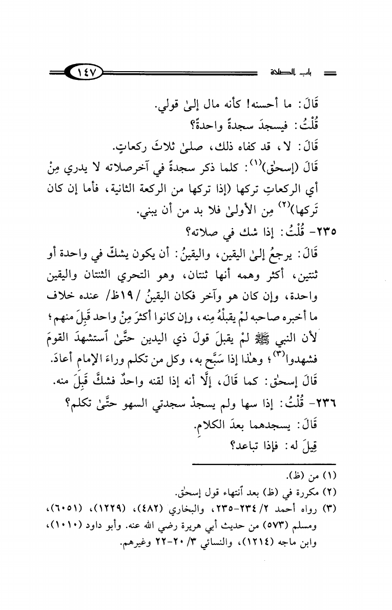 نام کتاب : مسائل الإمام أحمد بن حنبل وإسحاق ابن راهويه رواية إسحاق بن منصور الكوسج المروزي (ط. دار الهجرة) نویسنده : سحاق بن منصور الكوسج المروزي جلد : 1 صفحه : 147