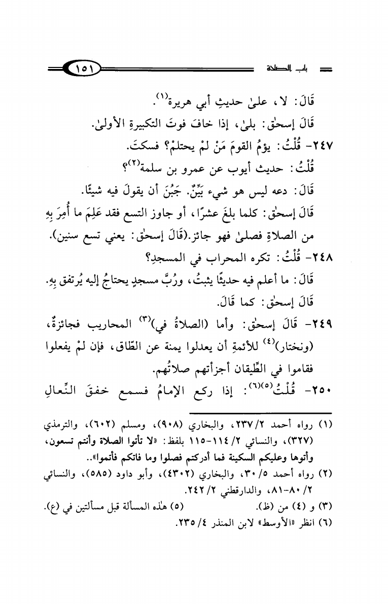 نام کتاب : مسائل الإمام أحمد بن حنبل وإسحاق ابن راهويه رواية إسحاق بن منصور الكوسج المروزي (ط. دار الهجرة) نویسنده : سحاق بن منصور الكوسج المروزي جلد : 1 صفحه : 151