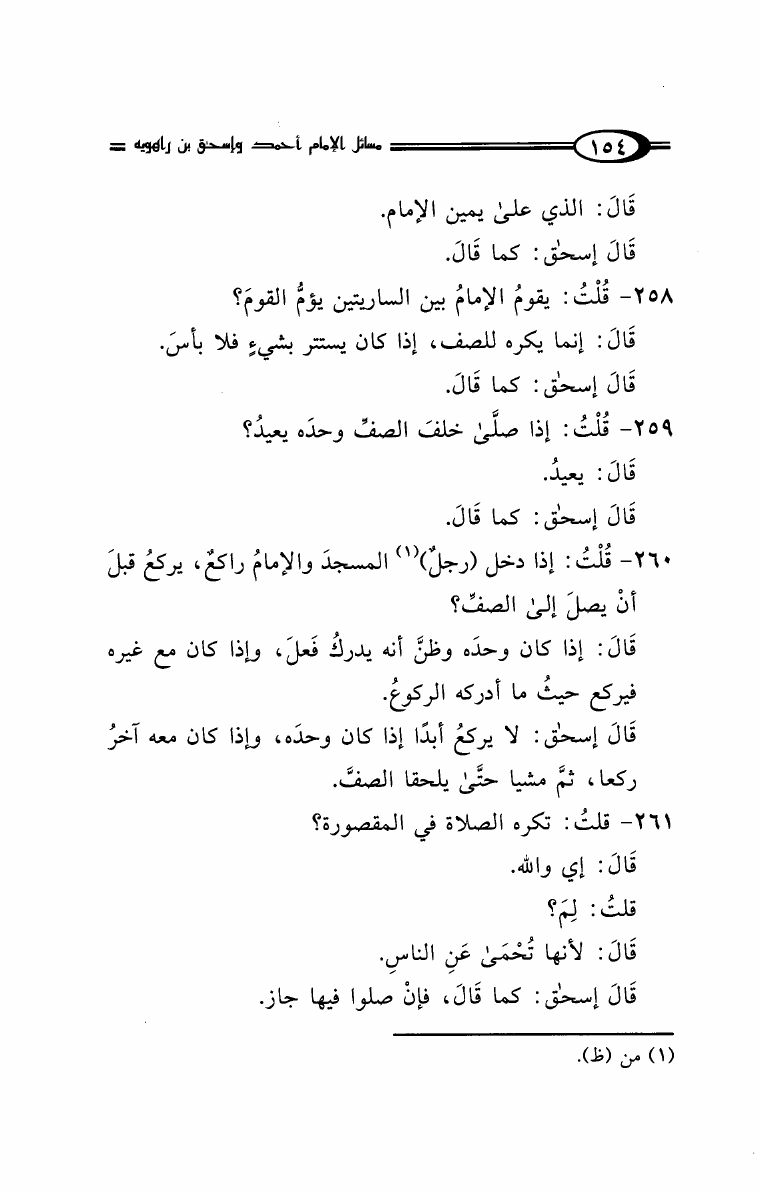 نام کتاب : مسائل الإمام أحمد بن حنبل وإسحاق ابن راهويه رواية إسحاق بن منصور الكوسج المروزي (ط. دار الهجرة) نویسنده : سحاق بن منصور الكوسج المروزي جلد : 1 صفحه : 154