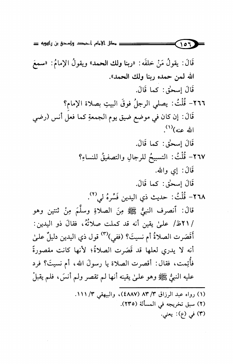 نام کتاب : مسائل الإمام أحمد بن حنبل وإسحاق ابن راهويه رواية إسحاق بن منصور الكوسج المروزي (ط. دار الهجرة) نویسنده : سحاق بن منصور الكوسج المروزي جلد : 1 صفحه : 156