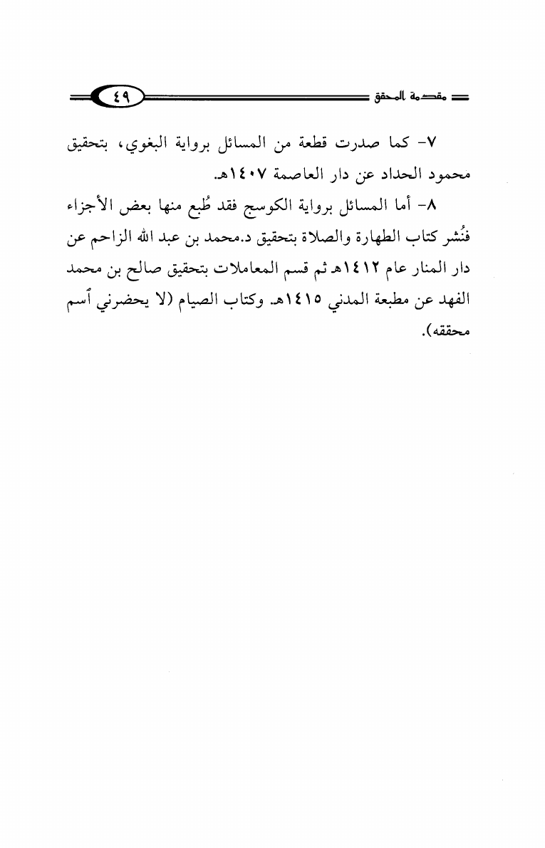 نام کتاب : مسائل الإمام أحمد بن حنبل وإسحاق ابن راهويه رواية إسحاق بن منصور الكوسج المروزي (ط. دار الهجرة) نویسنده : سحاق بن منصور الكوسج المروزي جلد : 1 صفحه : 49