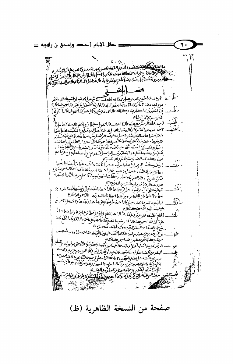 نام کتاب : مسائل الإمام أحمد بن حنبل وإسحاق ابن راهويه رواية إسحاق بن منصور الكوسج المروزي (ط. دار الهجرة) نویسنده : سحاق بن منصور الكوسج المروزي جلد : 1 صفحه : 60